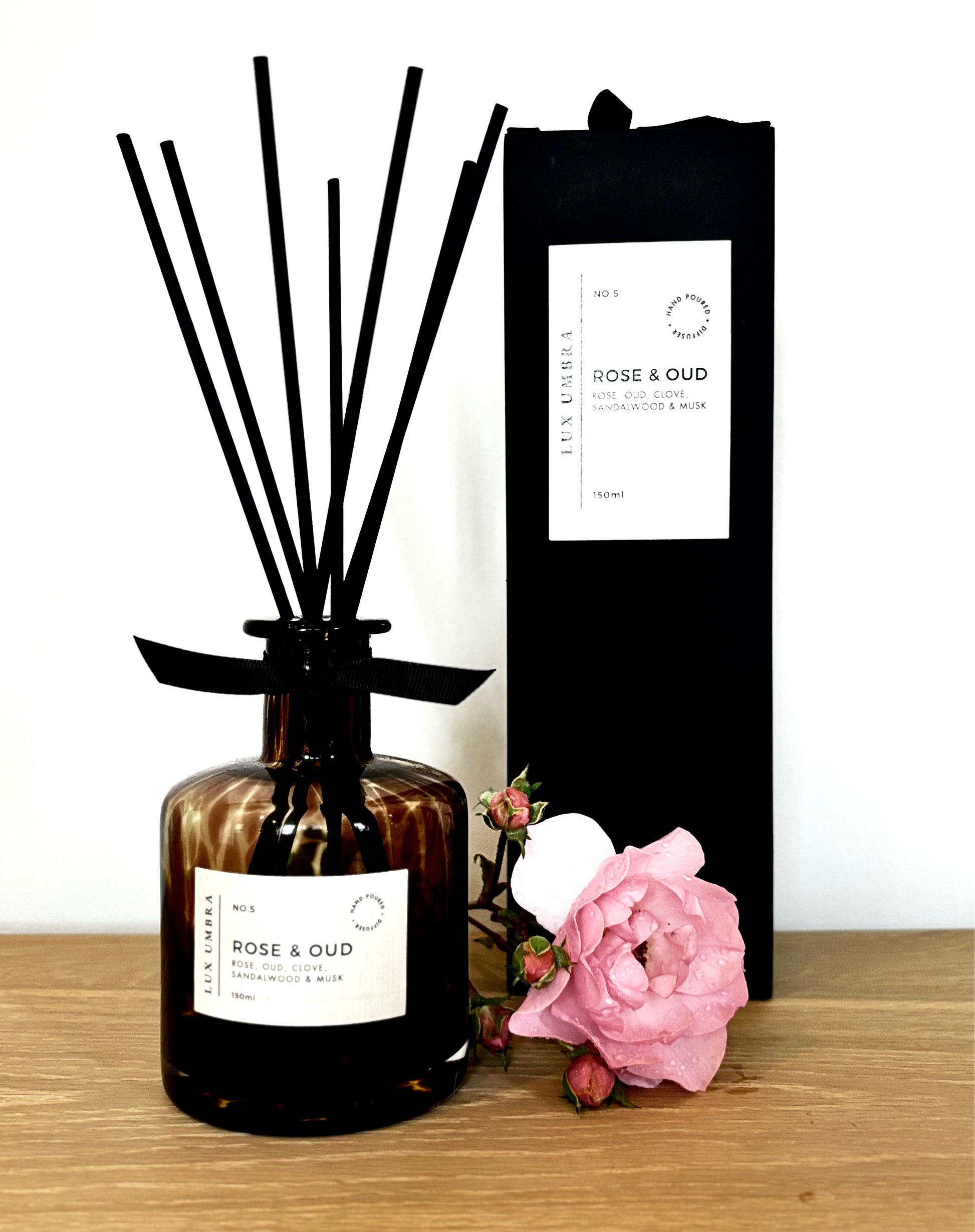 Our exquisite tortoiseshell glass jars are designed to be cherished and reused. Featuring ribbon detail and 6 black fibre reeds each jar is a piece of art in itself. Presented in a luxurious gift box tied with our signature black grosgrain ribbon, our diffusers make the perfect gift or a sophisticated addition to any decor.