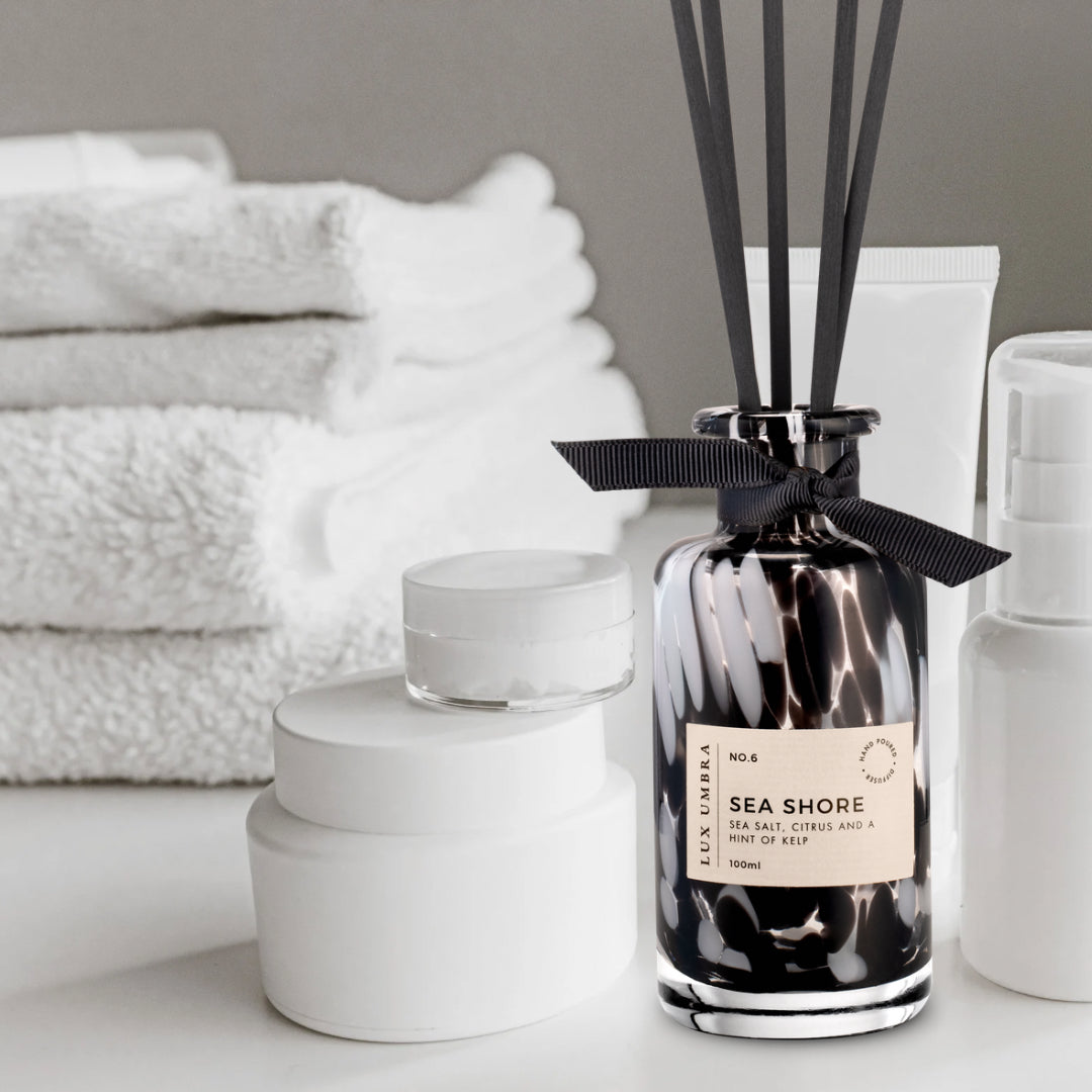 Our exquisite tortoiseshell glass jars are designed to be cherished and reused. Featuring ribbon detail and 5 black fibre reeds each jar is a piece of art in itself. Presented in a luxurious gift box tied with our signature black grosgrain ribbon, our diffusers make the perfect gift or a sophisticated addition to any decor.