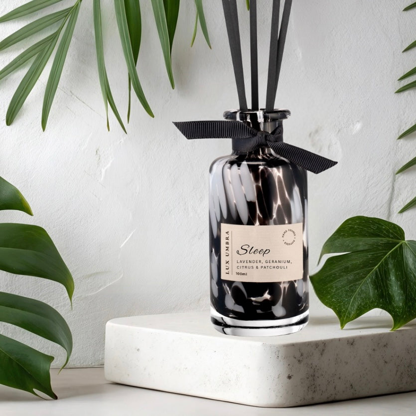 Soothe your restless mind and drift into blissful slumber with our sleep diffuser. Infused with relaxing lavender, patchouli, geranium, and citrus essential oils, it’s your perfect bedtime companion for the ultimate night’s sleep.